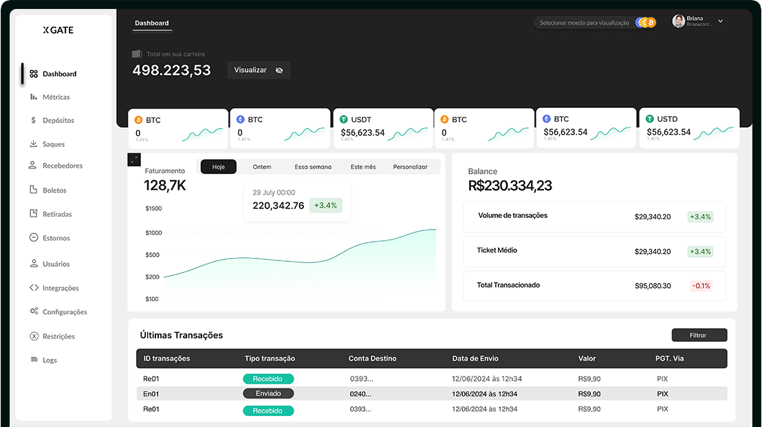 A XGATE suporta pagamentos via PIX e USDT atualmente.
